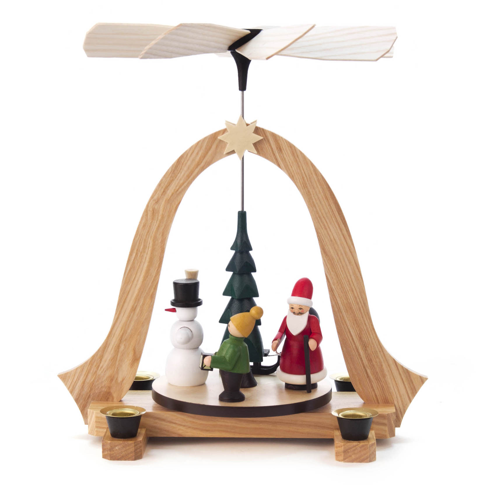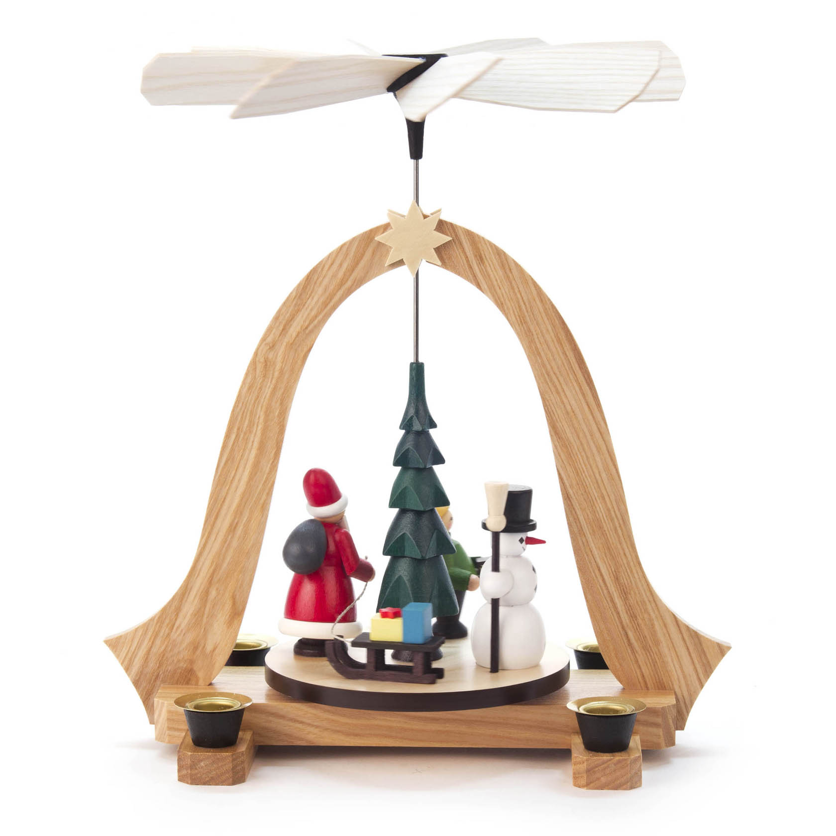 Handcrafted German pyramids are an essential part of holidays in households of Seiffen and indeed in the whole of Erzgebirge in Germany. Even more, with the many different styles available you have the freedom to choose your favorite to leave out and enjoy year-round! The candlelight they produce creates a cozy atmosphere and spreads warm light throughout your room. Once the candles are lit, the heat rotates the blades creating a captivating dance between light and shadow. Add a beautiful German Erzgebirge Pyramid to your holiday décor today!