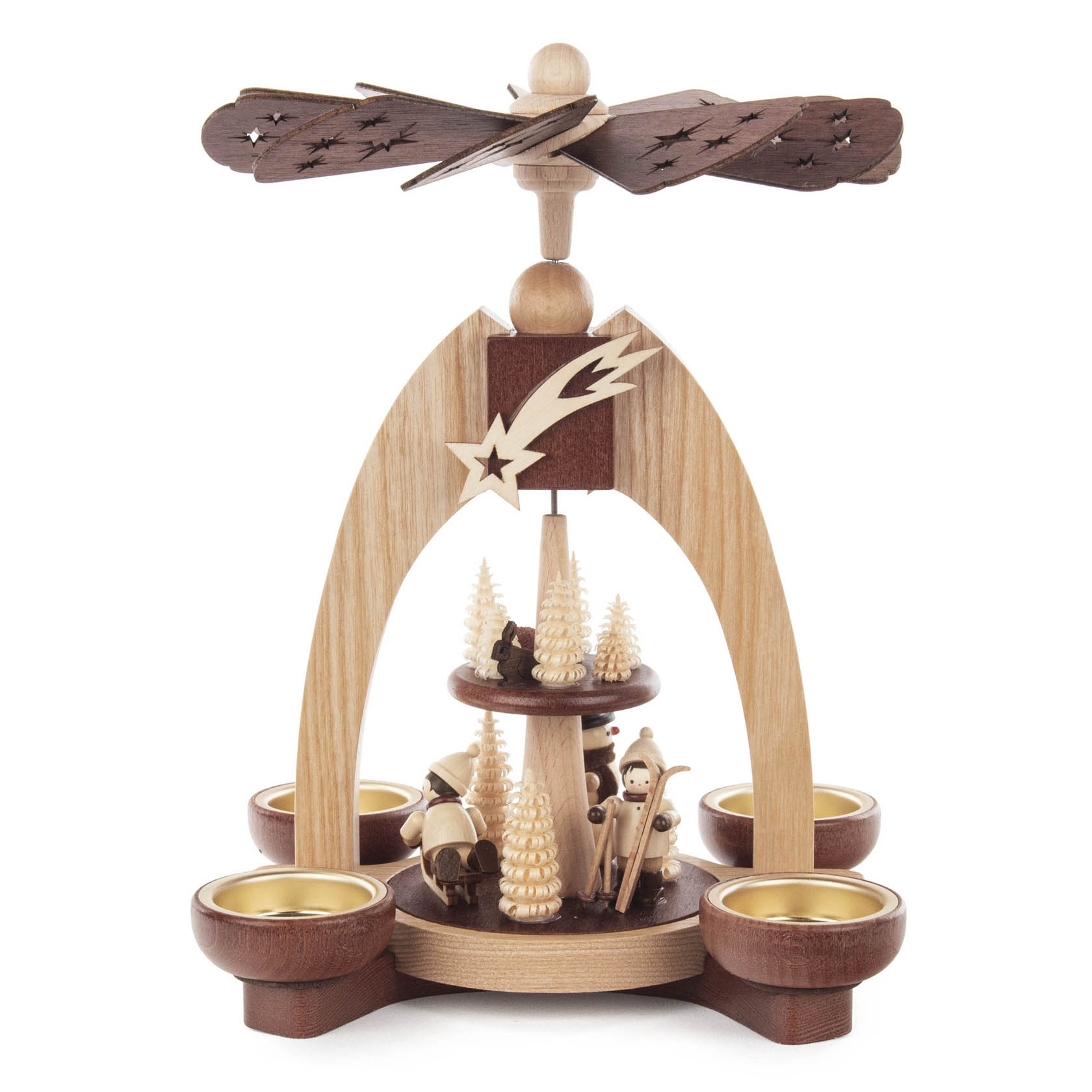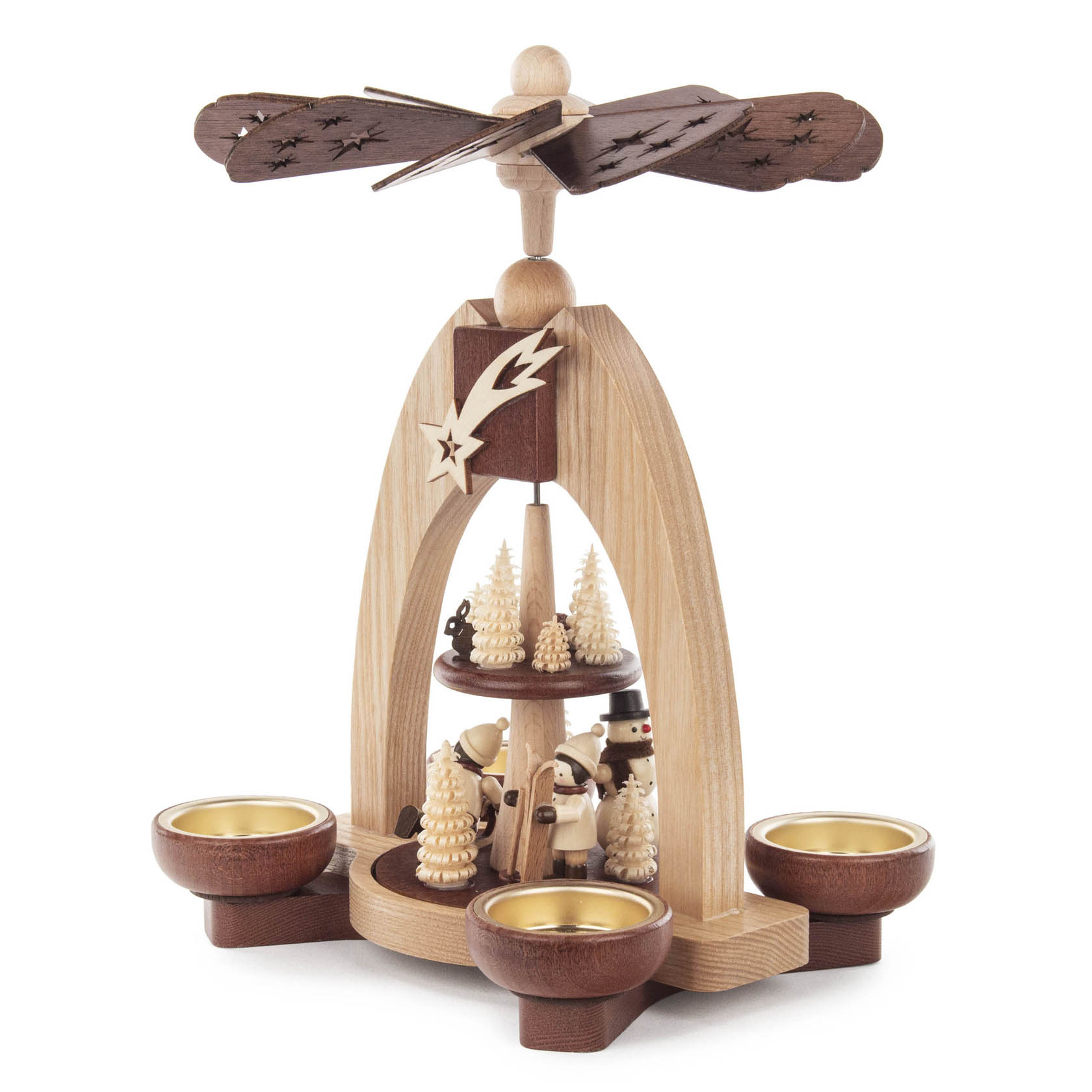 Handcrafted German pyramids are an essential part of holidays in households of Seiffen and indeed in the whole of Erzgebirge in Germany. Even more, with the many different styles available you have the freedom to choose your favorite to leave out and enjoy year-round! The candlelight they produce creates a cozy atmosphere and spreads warm light throughout your room. Once the candles are lit, the heat rotates the blades creating a captivating dance between light and shadow. Add a beautiful German Erzgebirge Pyramid to your holiday décor today!