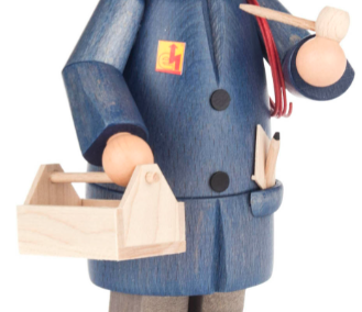 This Electrician German Smoker is ready to work! Equipped with a handcarved toolbox, he is sure to bring joy and fun to your home. This smoker comes from the turnery Findeisen in the Ore Mountains. The individual grain of the used wood is still visible. German Smokers come alive when you light the incense. Start your German Smoker collection today!
